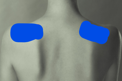 어깨가 아프다면 어깨 위쪽 승모쪽으로 붙이기 보다 어깨의 뒤쪽 날개죽지 위 파스가 뒤를 바라보도록 붙입니다.