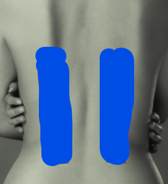 목과 마찬가지로 파스를 허리에 통으로 붙이기 보다 양쪽으로 나누어 척추 양옆 근육에 붙이면 됩니다.
