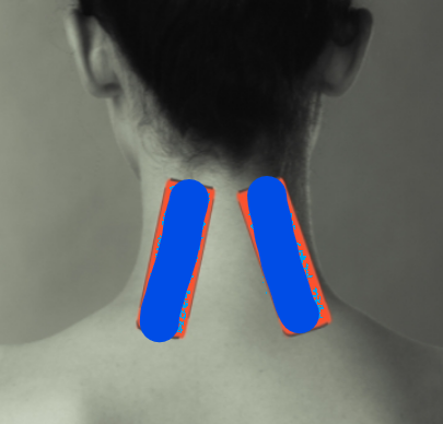 목이 아프거나 뒤통수가 당길때 파스를 통으로 목에 붙이는거 보다 양쪽으로 길게 잘라붙입니다.