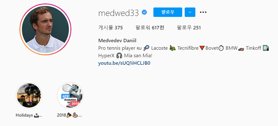 풀네임 : 다닐 세르게이비치 메드베데프 (Daniil sergeyevich Medvedev)