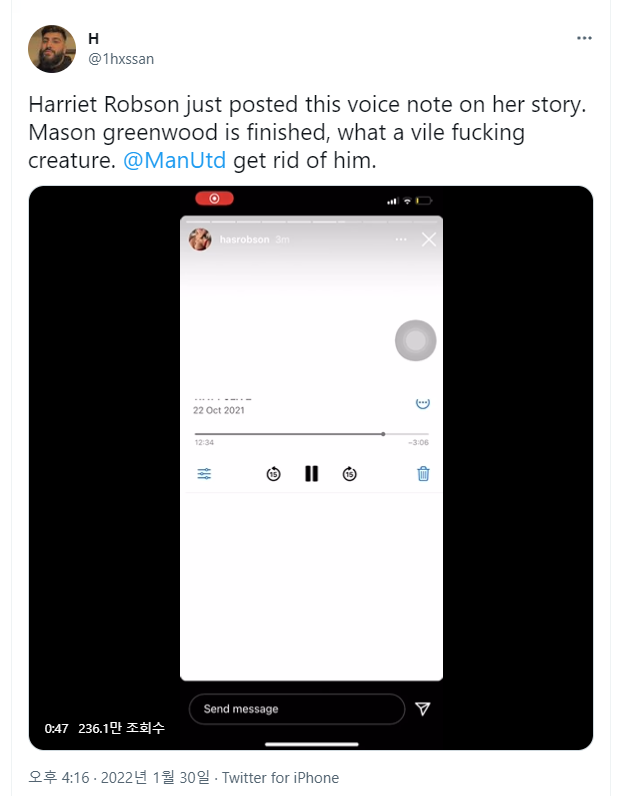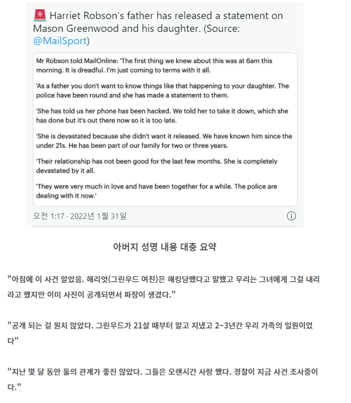 최근 이런 그린우드가 성폭행설에 연루되면서 여친 (여자친구) 를 폭행 및 성관계를 강요했다는 주장이 나오면서 화제입니다.