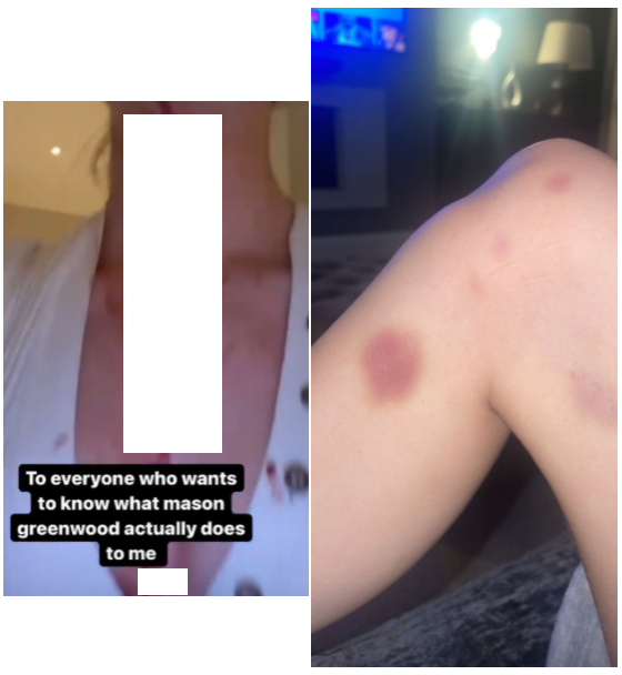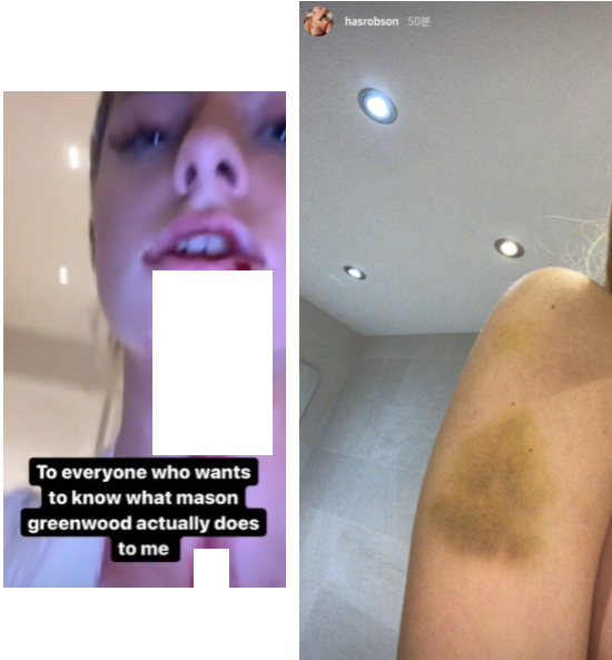 이 사람이 메이슨 그린우드가 실제로 나에게 무슨짓을 하는지 알고싶어하는 모든분들께 라는 문구와함께 폭행 사진들을 공개합니다.