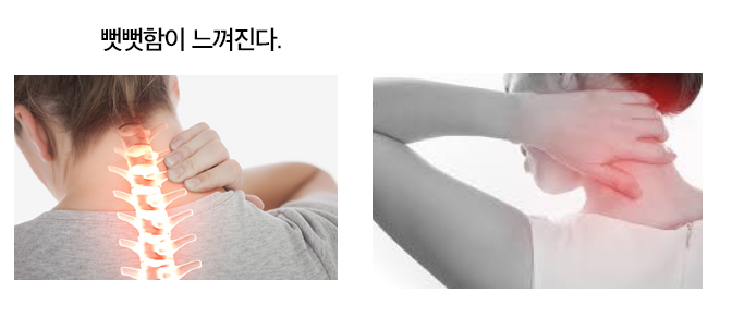 계속해서 목이 뭉치는 듯하고 뻣뻣한 느낌이 ㄷ브니다. 하루종일 목주변이 뻣뻣하며 피곤함을 느끼게 됩니다.