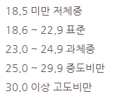 계산기를 꺼내서 직접 계산하기보다 각종 포털싸이트에서 제공하는 계산기들이 있는데 bmi만 알수 있죠.