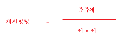 체지방량은 몸무게를 키의 제곱으로 나누면 됩니다.