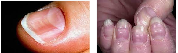 손톱에서 철분부족 증상을 확인 할 수 있습니다. 손톱이 약해지고 오목하게 변하는 스푼형 손톱, 설염, 구각염등의 증상이 나타납니다.