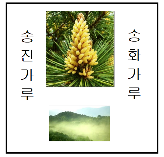 소나무의 꽃에서 나오는 가루를 송홧가루라고 부르며, 늦봄에 휘날립니다.