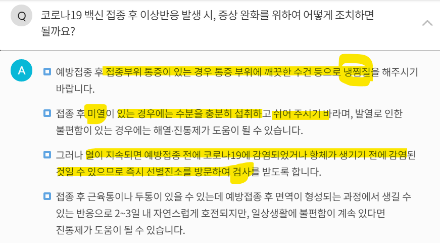 백신 접종 이후 이상반응 발생 시, 증상 완화를 위한 조치 방법